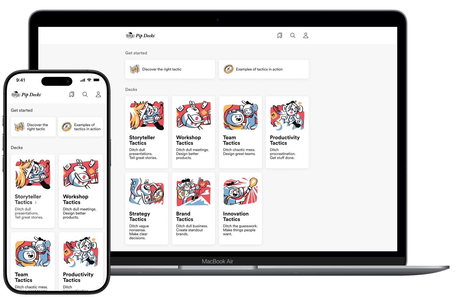 With the Pip Decks app, you can access your Pip Decks library on your phone, tablet or laptop – so you always have them to hand.