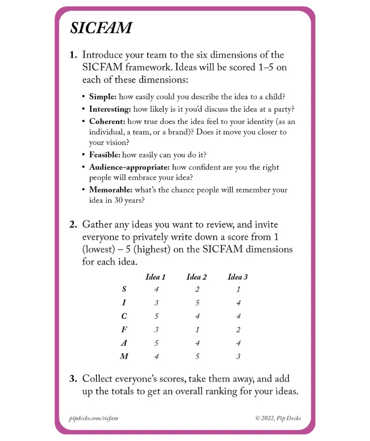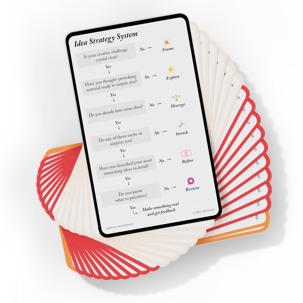 You’ll always choose the right approach with the Idea Strategy System. A simple set of questions helps you find the most useful category of tactics.
