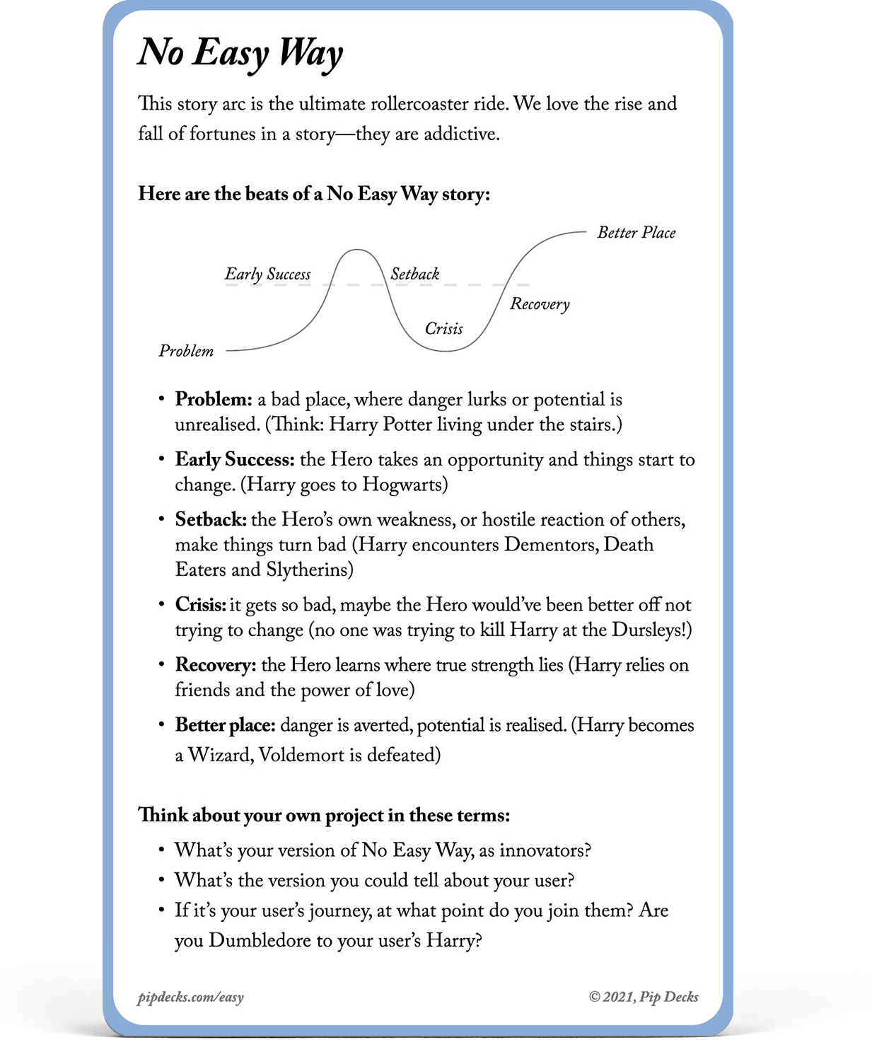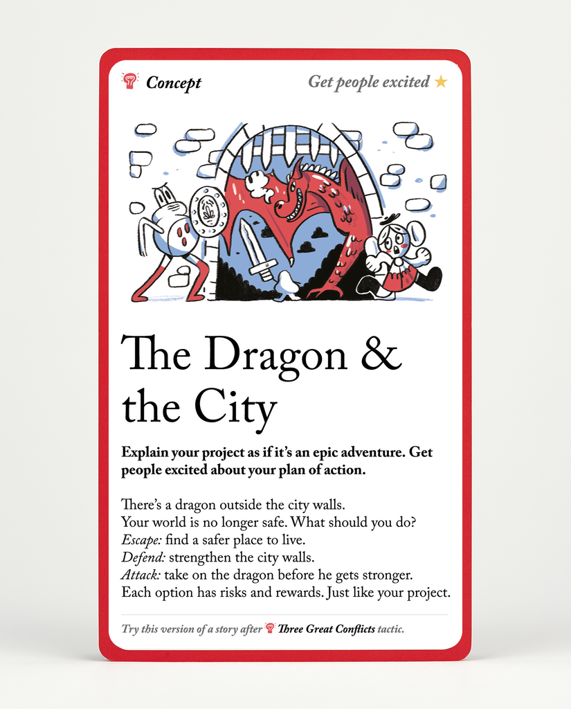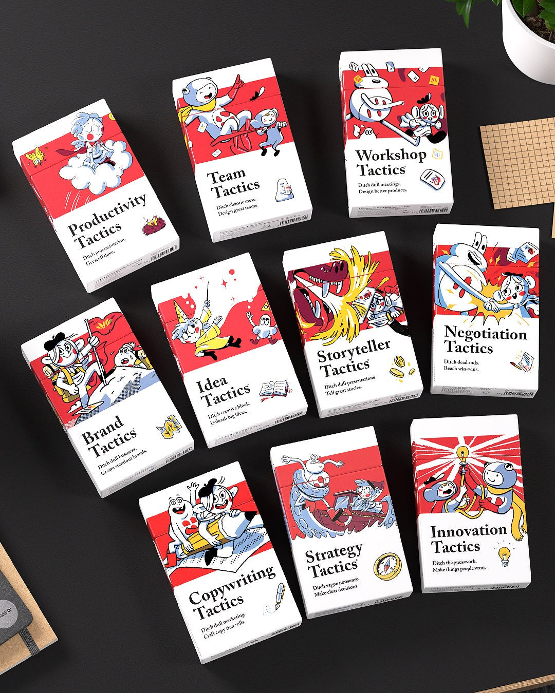 Each tactic fits on the back of a card, so it’s easily scannable, with techniques and inspirations to help you develop, structure and present your story.
