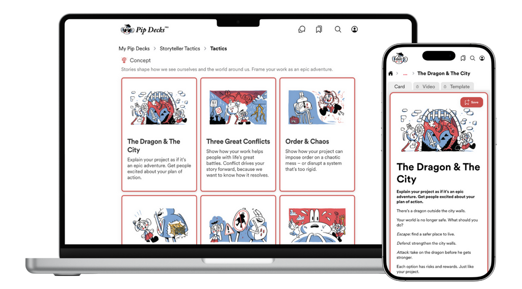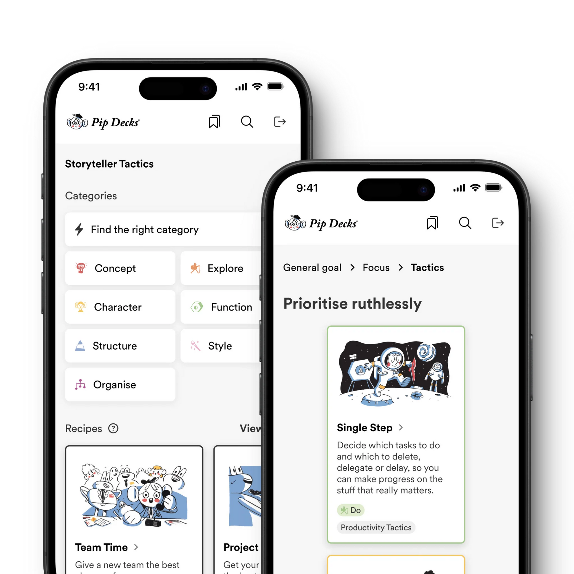 With the digital version of Storyteller Tactics, you'll instantly unlock all 50+ tactics for your phone, tablet or laptop in the Pip Decks app – so you always have them to hand.