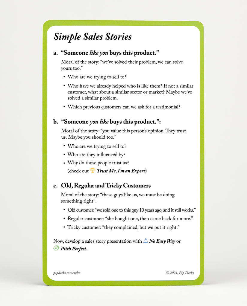 It took Steve (author of Storyteller Tactics) decades to learn the skills that make him a celebrated storyteller. It took him months to turn them into practical tactics. It will take you minutes to read each card and start applying the insights.