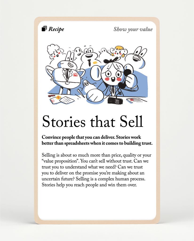 We’ve got all ingredients you’ll ever need to craft an effective story, no matter the circumstance. Storyteller Tactics contains 54 frameworks, prompts and exercises to help you confidently tell great stories about your work.